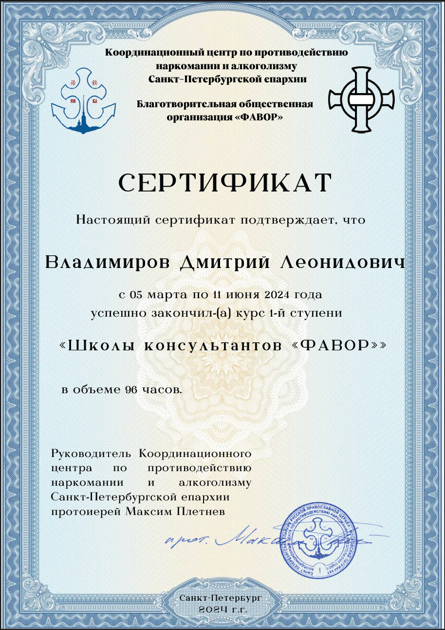 Наша организация хорошо зарекомендовала себя в сотрудничестве с администрацией городов Новороссийска, Анапы, Краснодара, Ростова-на-Дону, поскольку мы имеем более тридцати филиалов на территории Краснодарского края. Десять из них - на территории Новороссийской епархии (6 - в Новороссийске и 4 - в Анапе). В настоящее время, Владимиров Д. Л., занимается организацией трезвенного просвещения в филиалах своей организации. Всех желающих встать на путь абсолютной трезвости направляет в Общество трезвости, где они проходят полуторагодичный курс по избавлению от наркомании и алкоголизма.